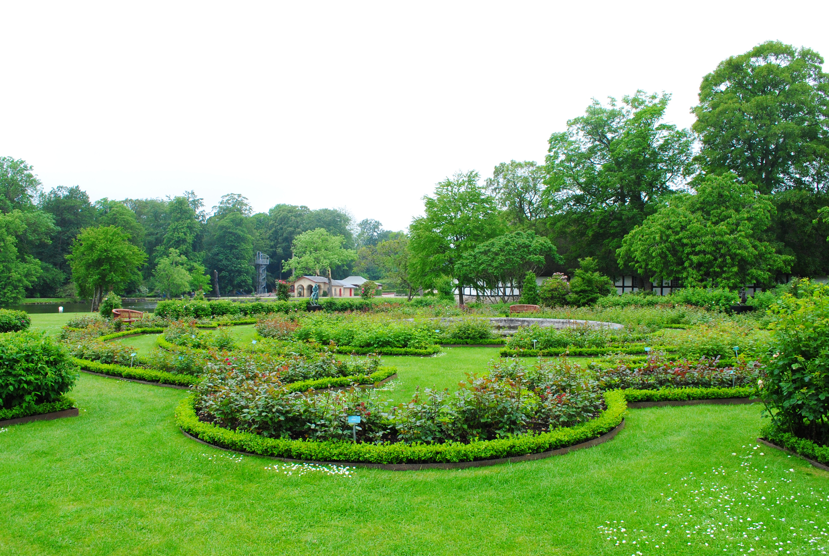 Семейство Алефелд-Лаурвиг-Бил отворили портите на Егесков за широката публика през 60-те години на миналия век. Толкова много усилия и средства били вложени в реконструкцията и поддържането на прилежащите зелени площи, че било грях те да не бъдат достъпни за всички. В границите на имението се грижат за няколко тематични градини, сред които английска – с диви полски цветя и романтична беседка в средата; водна – с красиви плаващи летни лилии; билкова и зеленчукова – за вкусове и аромати в изтънчения ресторант на замъка, и розариум – за ценителите на ароматното цвете. В Егесков са най-добре запазените и поддържани живи лабиринти в Скандинавия, лъкатушещи измежду зелени лигуструми и бамбукови растения. Това природно богатство донесло няколко престижни награди за озеленителите, сред които “Европейска градина на 2012” и “Най-добра историческа градина”, връчвани от Европейската градинска асоциация.