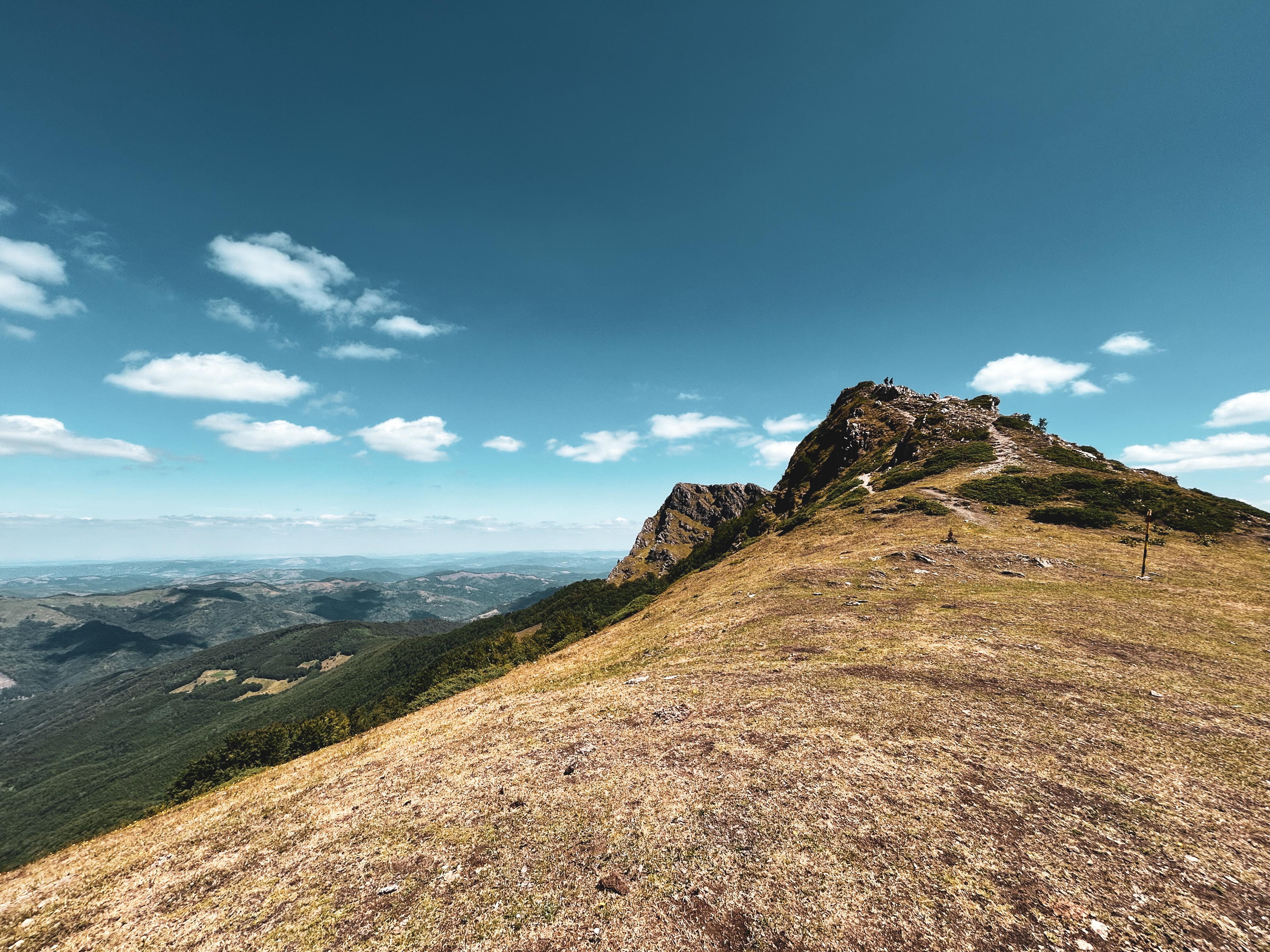 Склоновете в резервата стават все по-сурови и живописни, а пътеката минава през пасища и билни участъци с усещане за „ръба на света“. Релефът е силно пресечен и стръмен, със скали, израстващи почти отвесно от гората. Подсичаме няколко върха, но до този, дал името на резервата, не може да не се изкачим. Това поставя на изпитание страховете ми от високи отвесни скали, но с общи усилия и подкрепа преодолявам дискомфорта.